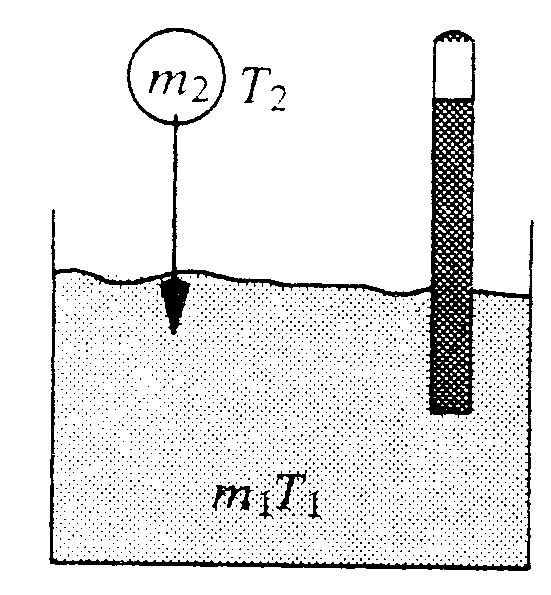 Die spezifische Wärmekapazität eines Stoffes kann man am einfachsten mit Hilfe der Mischungsmethode bestimmen. Dazu bringt man einen Körper der Masse m2 und der Temperatur T2 in einen Behälter mit Wasser der Masse m1 und der niedrigeren Temperatur T1. Nach einiger Zeit kann man die Mischtemperatur T des Wassers messen. Aufgrund der Energieerhaltung muß diese vom Metall bei der Abkühlung auf die gemeinsame Temperatur abgegebene Wärmemenge gleich mit der vom Wasser aufgenommenen Wärmemenge sein. Damit gilt die Gleichung: