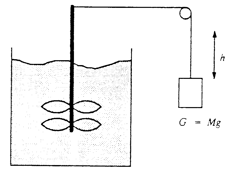 Durch die Reibung des Rührwerks in dem Wasser wird das Wasser erhitzt. Eine Temperaturdifferenz von D T bedeutet bei Wasser der Masse m eine Wärmeänderung von