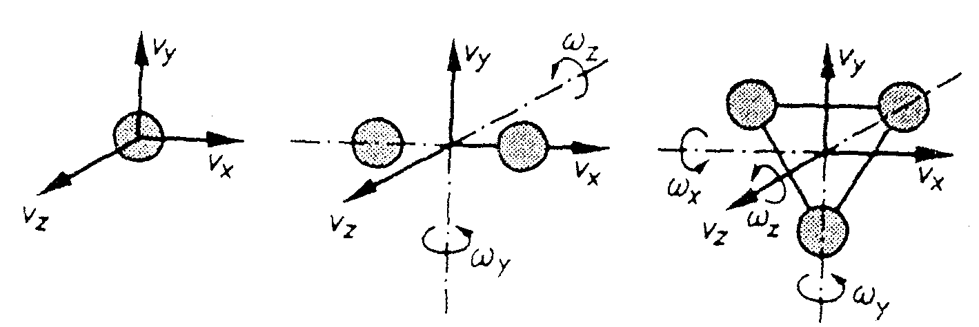 Besteht das Molekül nicht nur aus einem Atom, so hat es zusätzlich die Bewegungsfreiheit, sich um bestimmte Achsen zu drehen. Ein solches Molekül kann zusätzlich drei Freiheitsgrade der Rotation besitzen, je nachdem, ob die Drehachse raumfest ist (1 Freiheitsgrad) oder ob sie sich in einer Ebene bewegen kann (2 Freiheitsgrade) bzw. ob die Drehachse frei im Raum beweglich ist. Diese Überlegung zu einem späteren Zeitpunkt in der Experimentalphysik vertieft.