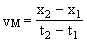 Nun überlegen wir, wie schnell der Massepunkt sich bewegt hat. Dazu betrachten wir zunächst zwei Bahnpunkte. Die Differenz der zwei Wegstrecken x1 und x2 ist die Entfernung, die der Massepunkt zurückgelegt hat. Er hat dazu die Zeit t2 - t1 gebraucht.
