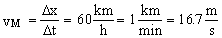 Wir definieren seine Geschwindigkeit als zurückgelegte Strecke pro dafür gebrauchter Zeit. Diese Geschwindigkeit ist abhängig vom Zeitintervall und der Strecke. Berechne ich die Geschwindigkeit für ein anderes Intervall, so erhalte ich auch eine andere Geschwindigkeit. Diese Tatsache ist bereits bekannt: Auf der Autobahn kann ich kurzfristig 150 km/h fahren, und brauche dennoch inklusive Stadtverkehr über eine Stunde, um von Aachen nach Köln zu gelangen. Aus diesem Grunde sprechen wir von einer mittleren Geschwindigkeit und bezeichnen sie mit vM.