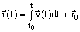 Merke: Der Ort des Massepunktes läßt sich über Integration aus der Geschwindigkeitsgleichung und der Randbedingung  ermitteln:  . |