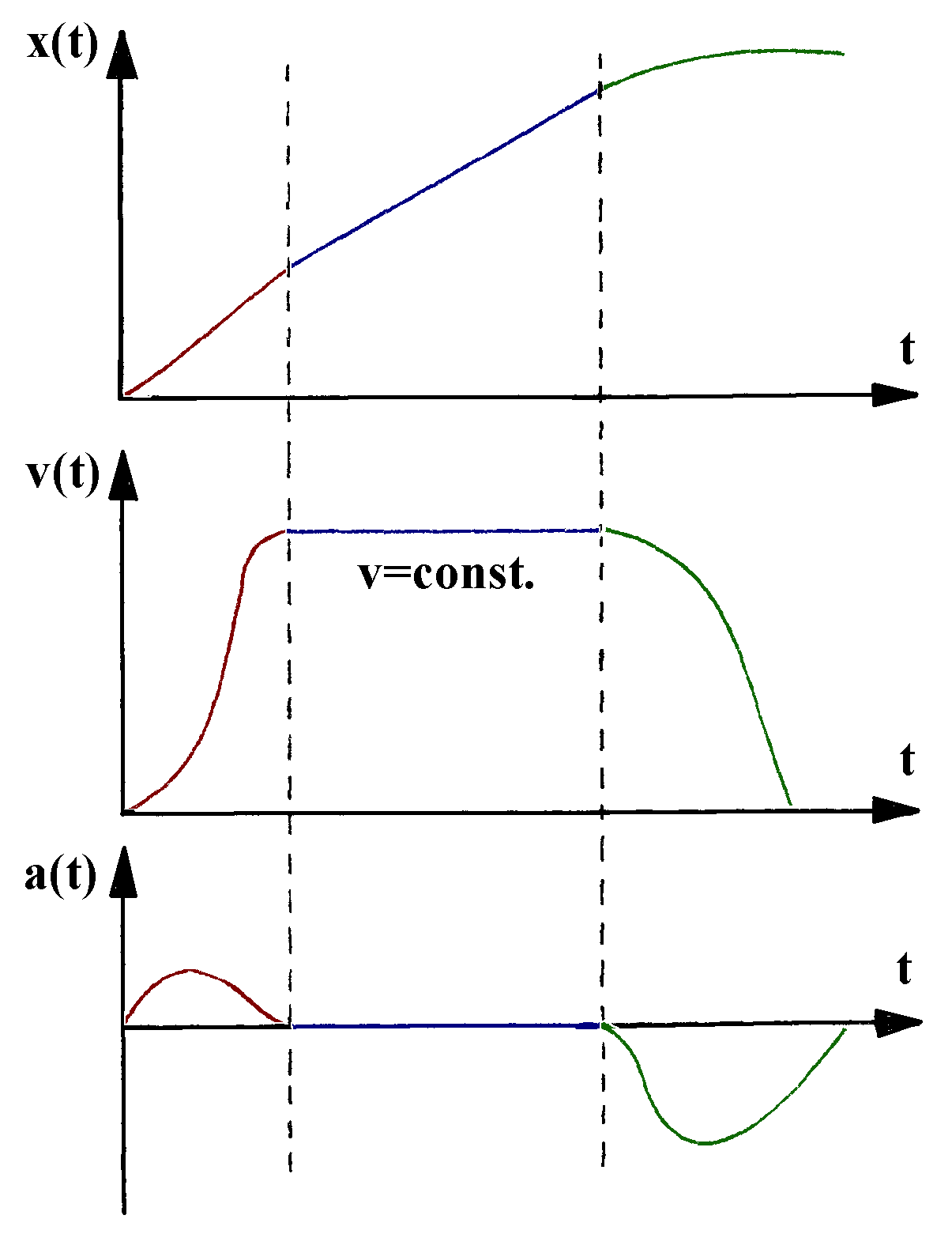 x(t) = v(t) = a (t - t0)+ v0 und a(t) = constant |