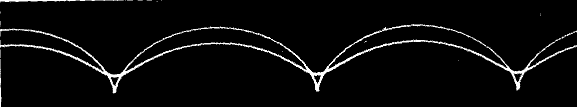 Die Projektion der Bewegung des Punktes auf eine Ebene aber zeigte, daß es sich dabei um eine Täuschung handelt. So sieht die Kreisbewegung auf einem mit konstanter Relativgeschwindigkeit zum Beobachter fahrenden System wirklich aus: