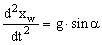 Der Wagen wird längs der schiefen Ebene beschleunigt mit