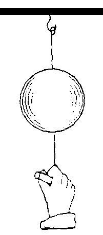 Diese Eigenschaft von Körpern wollen wir im nächsten Experiment zeigen. Hierzu wird eine Kugel mit großer Masse an einen dünnen Faden gehängt. Am unteren Ende der Kugel befestigen wir eine dickere Schnur mit Griff. Zunächst wird langsam am Griff gezogen. Über die Schnur wird die Kugel langsam beschleunigt. Der obere Faden wird gespannt, bis er schließlich reißt. Ein neuer Faden wird eingefügt und nun wird ruckartig, also möglichst schnell, am Griff gezogen. Die große Beschleunigung wird über die Schnur auf die Kugel übertragen. Aufgrund ihrer Trägheit, widersetzt die Kugel sich der Beschleunigung und folgt der Bewegung nicht. Jetzt muß die untere Schnur die Beschleunigung auffangen, sie reißt.