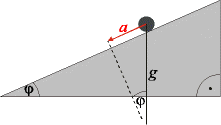 2.Die Erdbeschleunigung g läßt sich durch Messung der Beschleunigung bestimmen. Über die Zeit, in der die Körper die Strecke x zurücklegen läßt sich, wie bekannt, die Beschleunigung a errechnen. Wenn der Neigungswinkel bekannt ist, kann über g sina = a die Naturkonstante g errechnet werden.