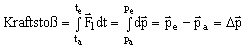 Die Änderung des Impulses über eine Zeitspanne von ta nach te kann also durch Integration errechnet werden. Man nennt dieses Integral über die Kraft Kraftstoß: