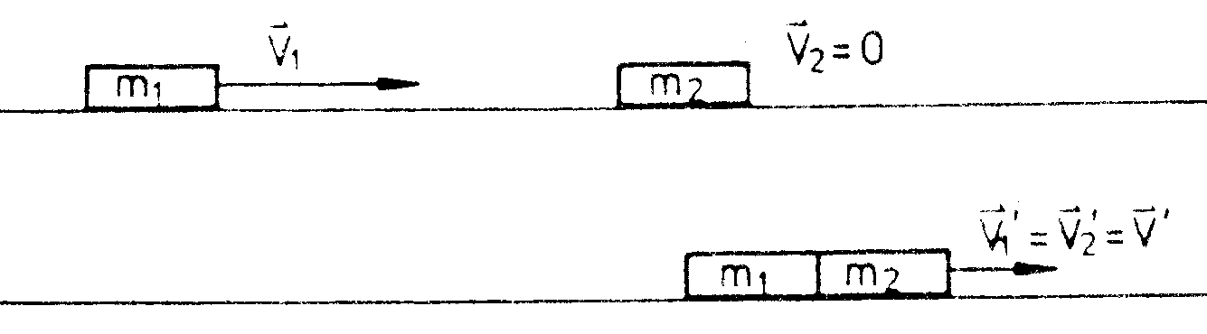 bewegt, während M ruht. Es gilt also die Impulserhaltung, nicht aber die Energieerhaltung. Nach dem Stoß bewegen sich die vereinten Massen mit