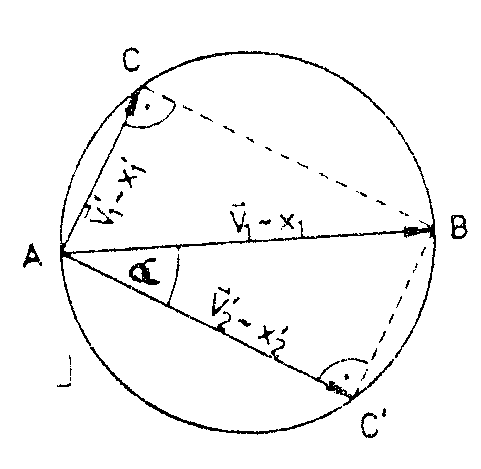 Aus ¬ und folgt wegen des Kosinussatzes, daß der eingeschlossene Winkel der Geschwindigkeitsvektoren ein rechter Winkel sein muß. Es entsteht beim Auftragen der Geschwindigkeitsvektoren also immer ein rechtwinkliges Dreieck. Die Ecken dieses Dreiecks liegen nach dem Satz des Thales immer auf einem Kreis. Dieser Kreis hat den Durchmesser des ursprüngliches Geschwindigkeitsvektors.