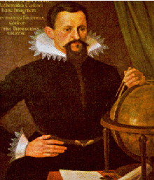 Im Jahre 1591 wurde Kepler Magister in Tübingen; in den Jahren 1594 - 1600 war er Lehrer für Mathematik und Moral an der Stiftsschule in Graz. Dort veröffentlichte er 1596 als Erstlingswerk die Abhandlung "Mysterium cosmographicum" , in dem er die Zahlenverhältnisse im Aufbau des Planetensystems zu ergründen und ihre Harmonie zu beweisen suchte. Dieses Werk machte Kepler als Astronom bekannt.