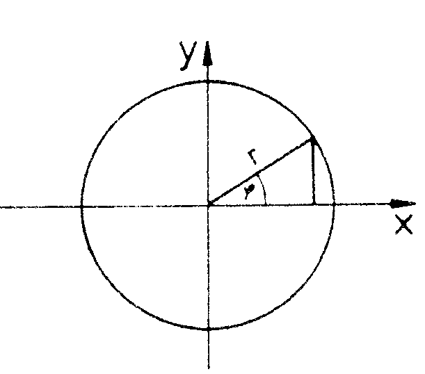 In Kapitel IV.8.2 hatten wir bereits die Polarkoordinaten r und j kennengelernt. Wir hatten festgestellt, daß jeder Punkt in einer Ebene sich darstellen läßt durch die Angabe des Radius des gedachten Kreises um den Mittelpunkt, auf dem der Punkt liegt, und den Winkel, den der Vektor mit einer definierten Achse einschließt. Insbesondere gilt für einen Punkt auf einem Kreis mit konstanten Radius, daß er bei Kenntnis des Radius nur durch den Winkel beschrieben werden kann. Diese Koordinaten spannen also eine Ebene auf und lassen sich folglich auch in einem ebenen Koordinatensystem einzeichnen. Die Achsen werden von den beiden Polarkoordinaten bestimmt.