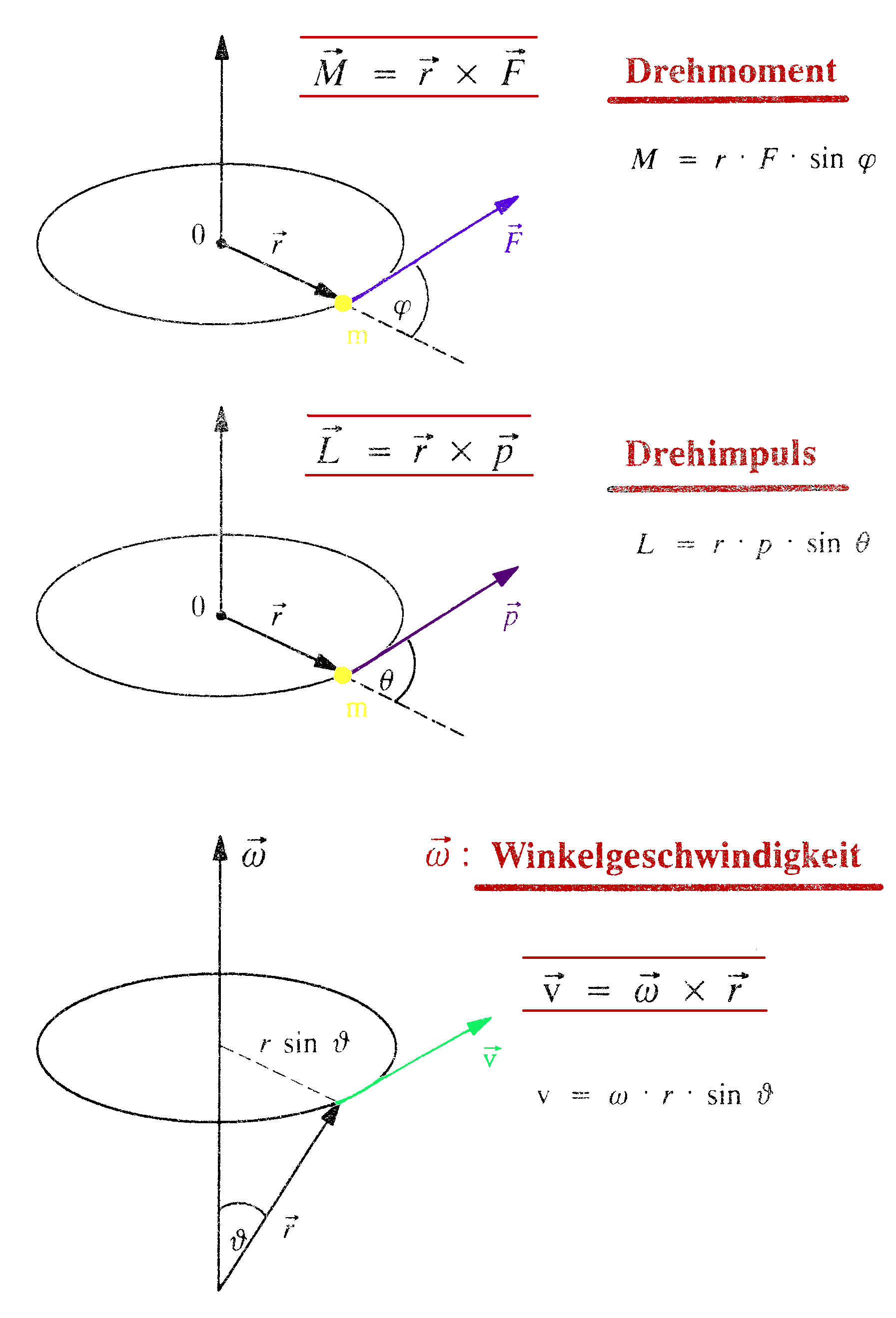 V.3.4 Zusammenfassung der wichtigsten Vektorgrößen der Rotation