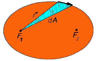 2. Kepler'sches Gesetz: Der von der Sonne zum Planeten gezogene Fahrstrahl überstreicht in gleichen Zeiten gleiche Flächen. |