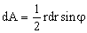 Die schraffierte Dreiecksfläche berechnet sich als die Hälfte des Produktes der Höhe h und der Strecke r: