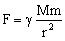 Eine Masse M übt auf eine andere Masse m, die sich im Abstand r befindet, eine Kraft  aus, für die gilt: . |