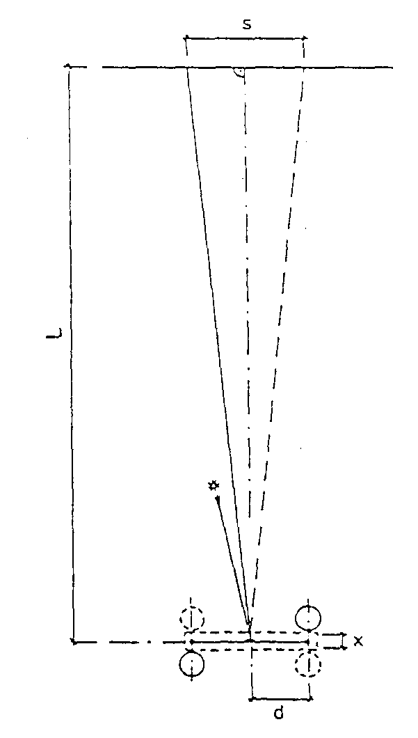 wenn der Weg der kleinen Kugeln mit x und ihr Abstand von der Achse d genannt wird. Der Reflexionswinkel des Strahls wird um 2q geändert. Mit L als Abstand des Spiegels von der Projektionsfläche und s als Weg des Lichtzeigers auf der Wand gilt