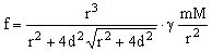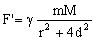 Die wirkende Kraft läßt sich mit dem Gravitationsgesetz schreiben als