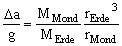 Die Rechnung für die Beschleunigungen ergibt ein Verhältnis zur Gravitationsbeschleunigung g von
