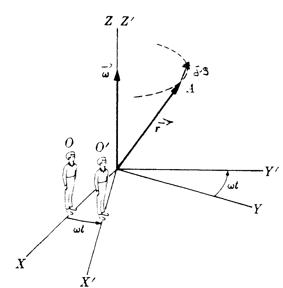 Gegenüber einem Inertialsystem S drehe sich das System S' mit einer konstanten Winkel-geschwindigkeit w um die z-Achse. Beide Systeme haben denselben Ursprung.