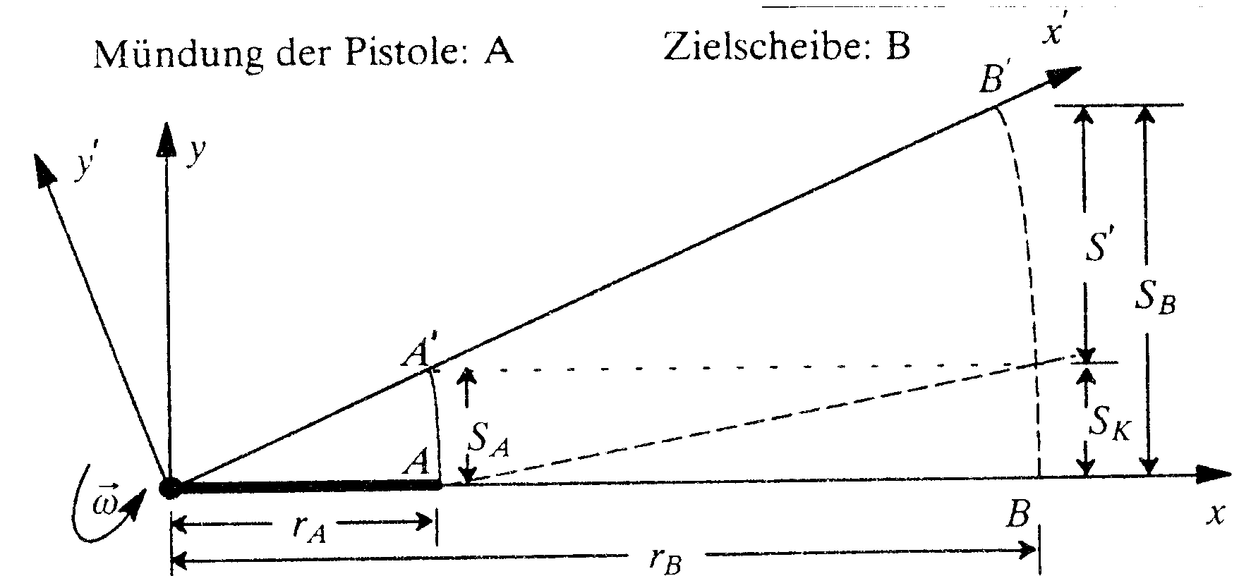 von x = rA bei t = 0 abgeschossen. Er kommt bei Punkt B, dem Mittelpunkt der Scheibe, an nach einer Zeit t. Aus der Kinematik kennen wir die Beziehung für t