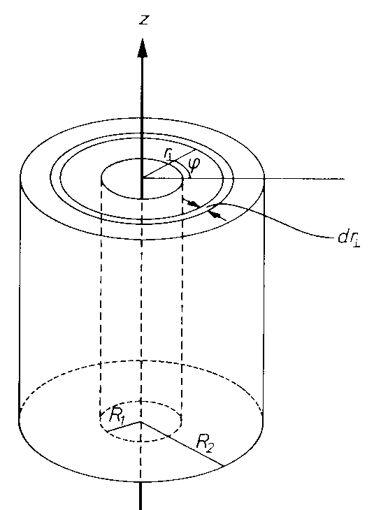 Der Zylinder habe die Dicke, bzw. Länge l und den Radius R. Nun muß das Integral über das Volumen
