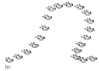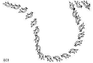Die Richtung der Körperachsen dieser Tauben, die eine reine Translation ausführen, bleibt erhalten.