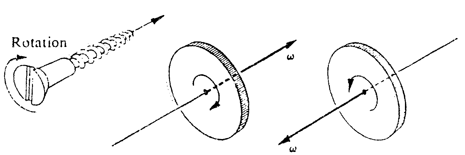 Dabei muß einmal eine Konvention gefunden werden, in welche Richtung die Winkelgeschwindigkeit positiv definiert wird. Man einigte sich hier darauf, daß die Drehrichtung und der Vektor der Winkelgeschwindigkeit eine Rechtsschraube bilden: