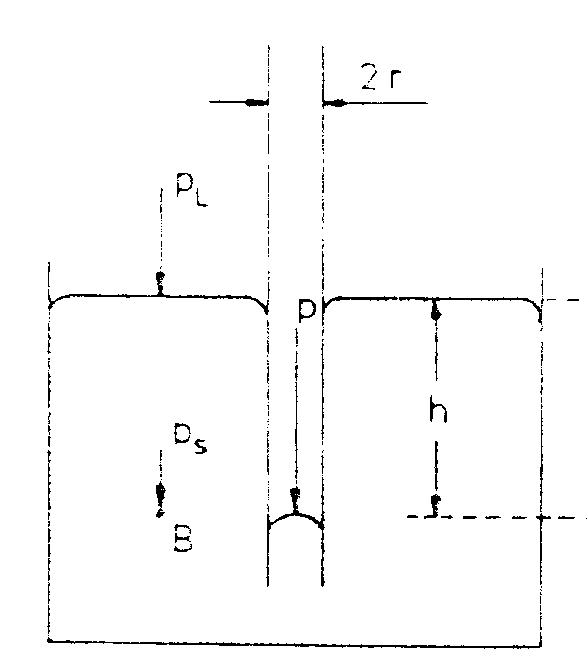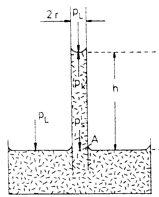 s ist die Oberflächenspannung der Flüssigkeit gegen Luft. Für nicht benetzende Flüssigkeiten wirkt der Druck in die entgegengesetzte Richtung: Der Flüssigkeitsspiegel wird herabgedrückt. Man spricht in diesem Fall von einer 'Kapillardepression'