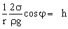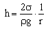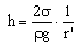 Eine Flüssigkeit steigt in einem engen Rohr des Radius r um das Stück h an. Die Oberfläche bildet einen Teil einer Kugelschale mit dem Radius R. Dieser Radius R entspricht nur im Grenzfall eines sehr kleinen Benetzungswinkels