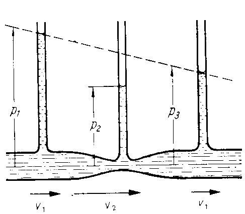 Die Druckdifferenz wurde zuerst von D. Bernoulli (1700 - 1782) berechnet. Seine Lösung ist als Bernoullische Gleichung bekannt; auch sie gilt nur für ideale, inkompressible Flüssigkeiten.