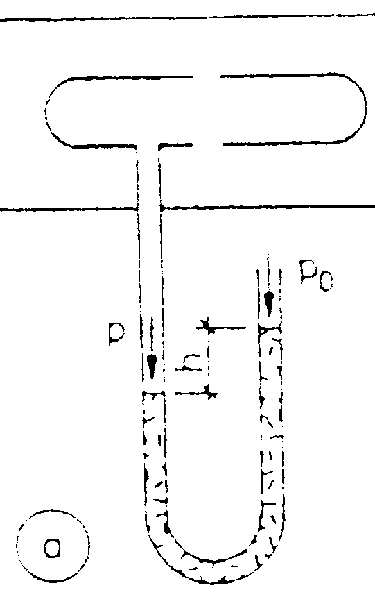 Eine andere Möglichkeit, den hydrostatischen Druck zu messen, bietet die Sonde in Bild a. Mit dieser Sonde kann der statische Druck des vorbeiströmenden Mediums gemessen werden. Wenn der Außendruck p0 bekannt ist, berechnet sich aus der Höhendifferenz der beiden Wassersäulen mit